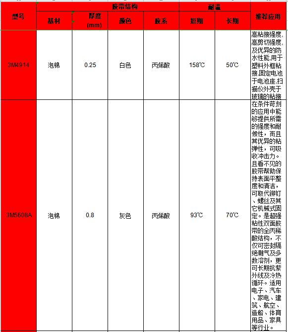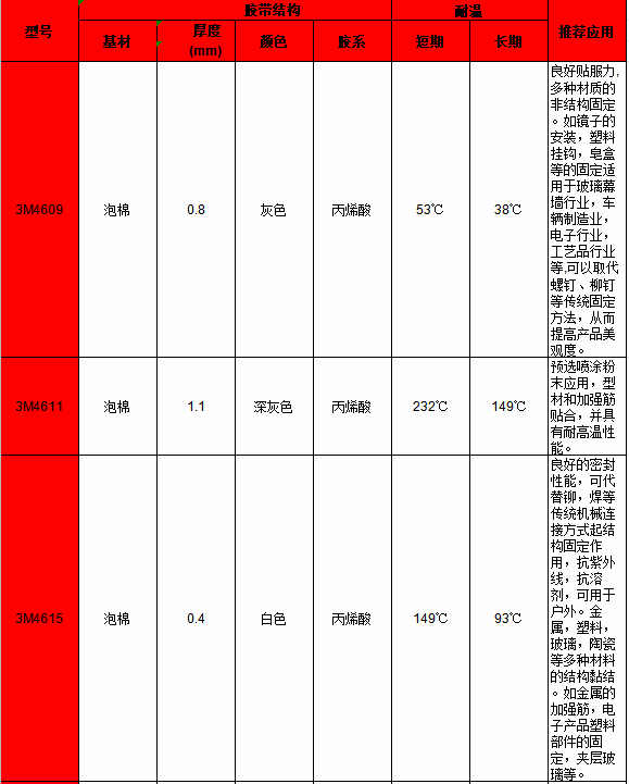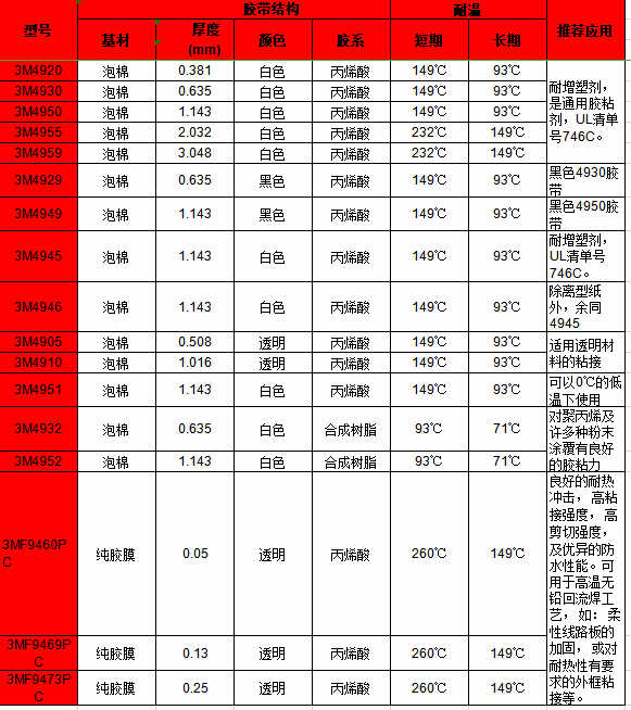 (以上3M膠帶依次為:3M4056、3M4462、3M4625、3M4913相關(guān)介紹)