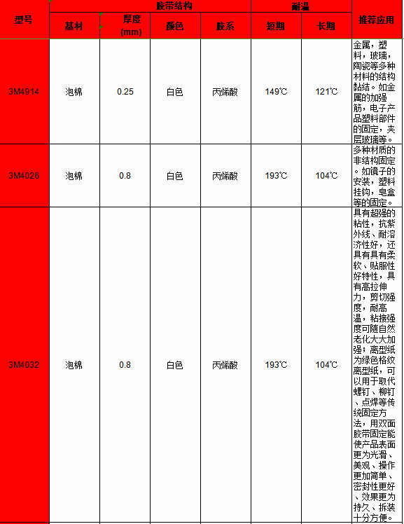 (以上是3M 4914、3M 4026、3M 4032相關(guān)型號特點說明)